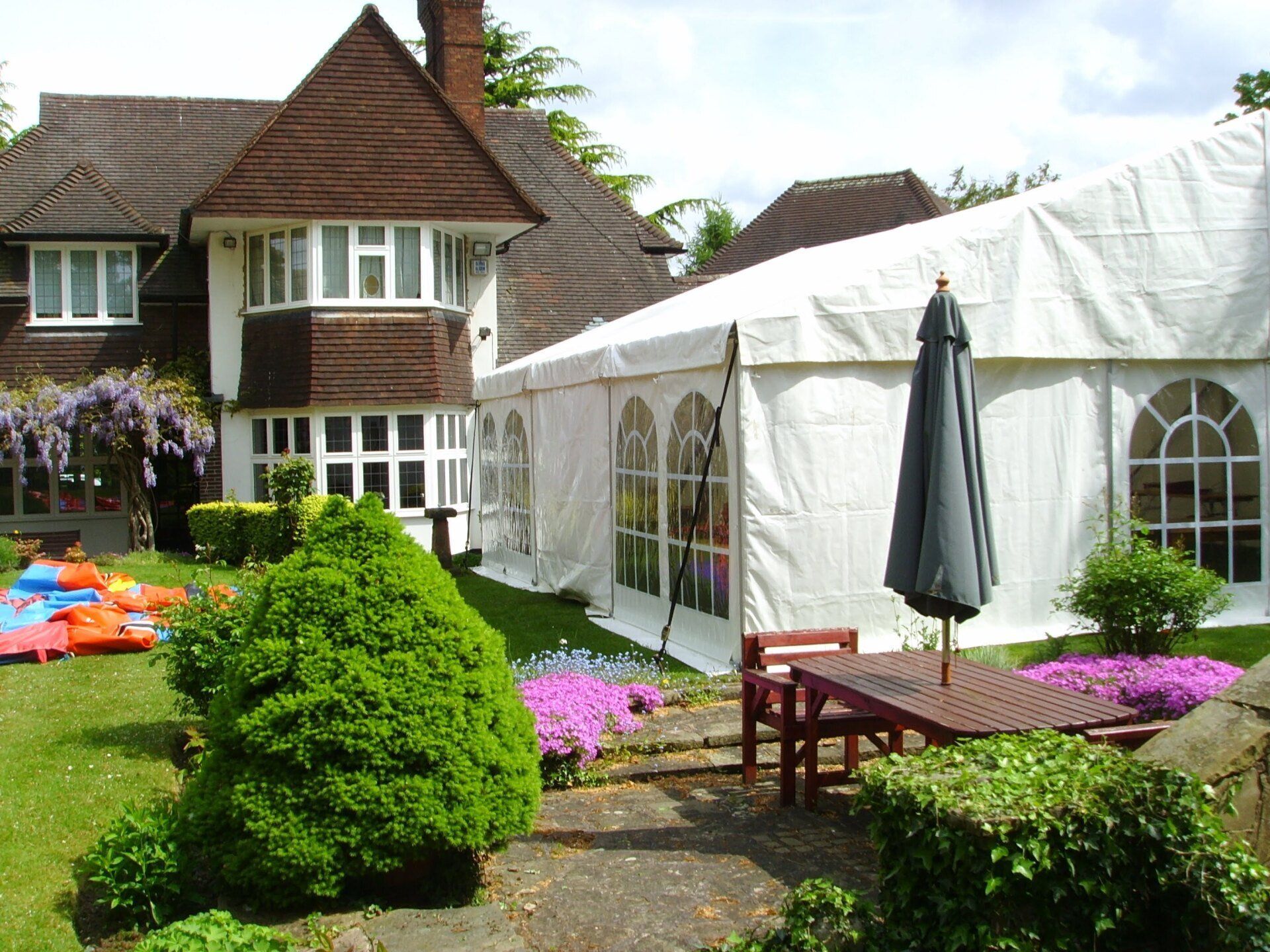 We have a large selection of marquees for hire from 6 to 40 feet wide and up to 200 feet long (2 to 12 metres wide and up to 60 metres long). We can erect them on ground that has different height levels (such as slopes and steps), keeping the marquee safe and level. They can also be erected adjoining your property to provide a useful extension to living space.
